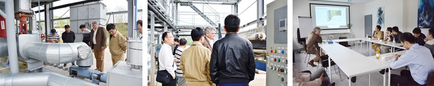 The presentation was followed by a tour of the headquarters, where the Chinese delegation could see the first industrial-size HTC plant, as well as our first plant used for research and development.